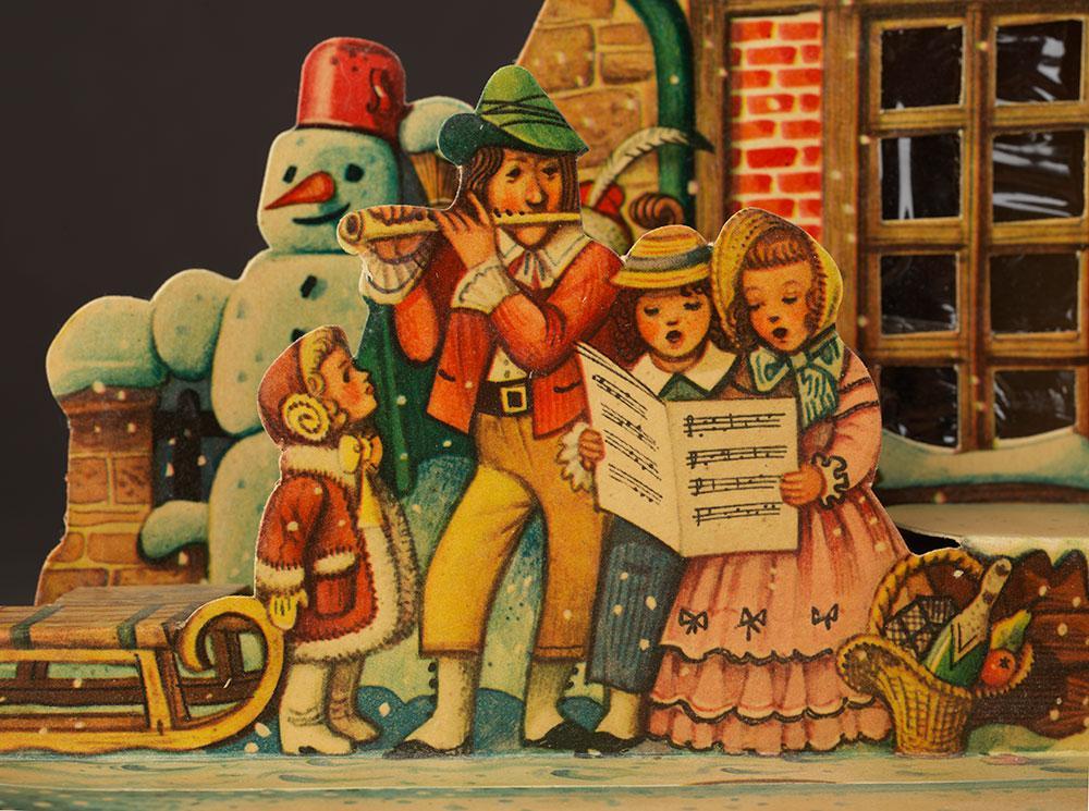 Each year Kubašta created a new pop-up Christmas scene for greeting cards, table toppers and advent calendars which featured the snow-covered scenes of his own fond Christmas memories. When NAZI forces tried to ‘redefine’ Christmas in occupied Prague during World War Two, Kubašta resisted by designing the celebrated 3-D Christmas creche with traditional Old Prague scenes to comfort the locals.